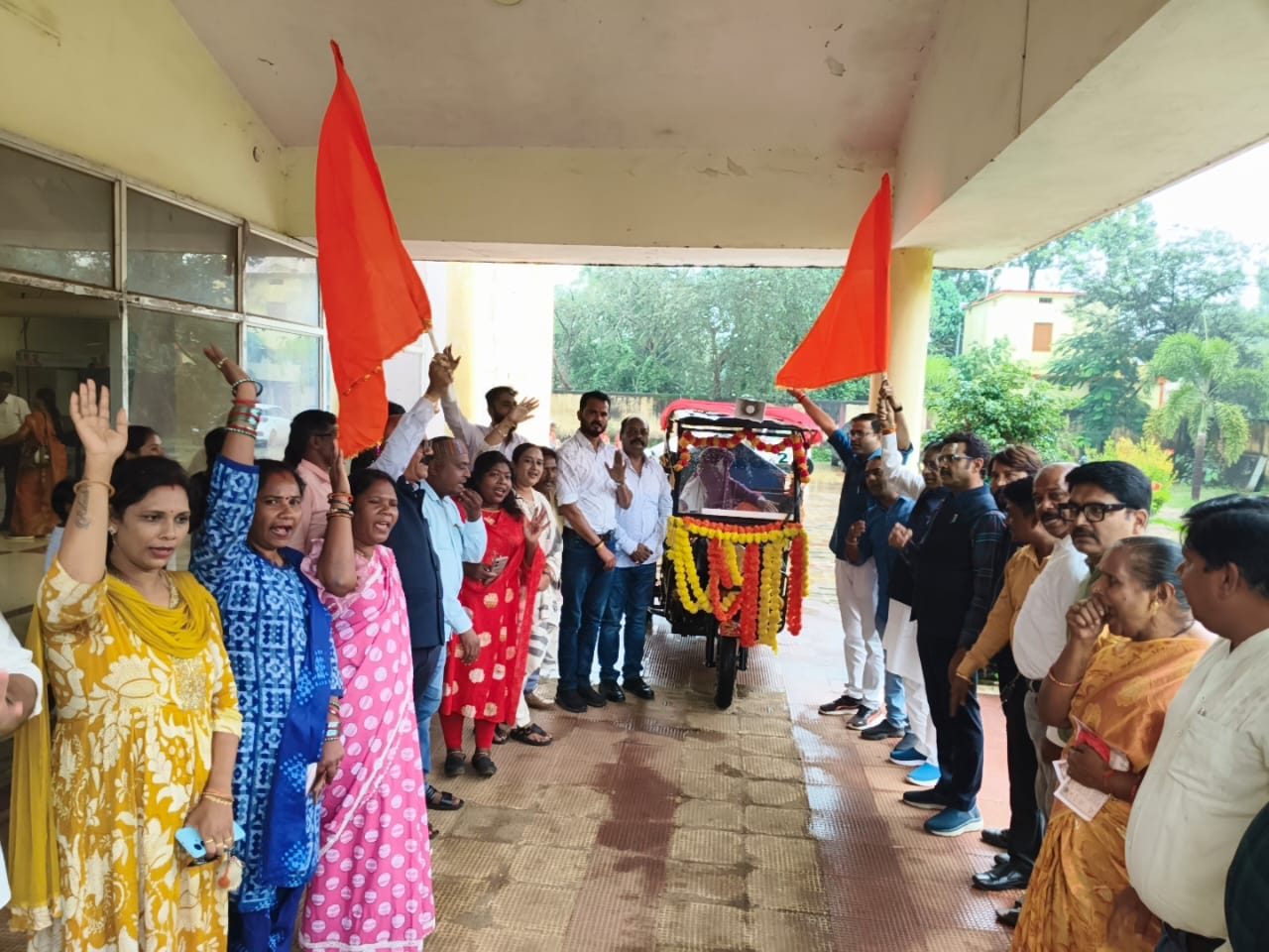 जगदलपुर :- नगर निगम जगदलपुर द्वारा दुर्गा उत्सव के अवसर पर स्वच्छता एवं पर्यावरण संरक्षण की दिशा में एक अभिनव पहल की गई है। नगर के विभिन्न दुर्गा पंडालों व मंदिरो से पूजन सामग्री एकत्र करने हेतु विशेष पूजा सामग्री संग्रहण वाहन (ई-रिक्शा सेवा) का शुभारंभ आज श्यामा प्रसाद मुखर्जी सभागार टाउन हॉल से किया गया। इस अवसर पर महापौर संजय पांडे, नगर निगम अध्यक्ष खेमसिंह देवांगन, एमआईसी सदस्य निर्मल पानीग्राही, राणा घोस, त्रिवेणी रंधारी, योगेंद्र पांडे, संग्राम सिंह राणा, पार्षदगण श्याम सुंदर बघेल, आशा साहू, पूनम सिन्हा, गायत्री बघेल, प्रकाश झा, अविनाश श्रीवास्तव, दिगंबर राव, विक्रम यादव, राजा यादव, स्वच्छता ब्रांड एंबेसडर रतन व्यास, झरना मोहंती, प्रभात चौहान, अनिमेश चौहान, अभिलाष यादव, मनोज ठाकुर आदि उपस्थित रहे।