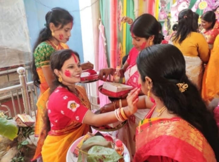 माना जाता है कि जब मां दुर्गा मायके से विदा होती हैं, तो सिंदूर से उनकी मांग भरी जाती है। इसके साथ ही कई महिलाएं एक दूसरे के चेहरे पर सिंदूर लगाते हुए नजर आई। यह उत्सव होली के पर्व जैसा लगा। इसके ज़रिए महिलाएं कामना करती हैं कि एक-दूसरे की शादीशुदा जिंदगी सुखद और सौभाग्यशाली रहे।