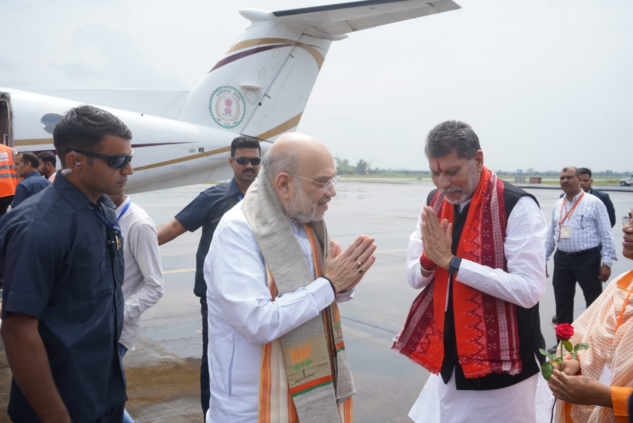 केंद्रीय गृह मंत्री अमित शाह पहुंचे जगदलपुर, एयरपोर्ट में हुआ भव्य स्वागत