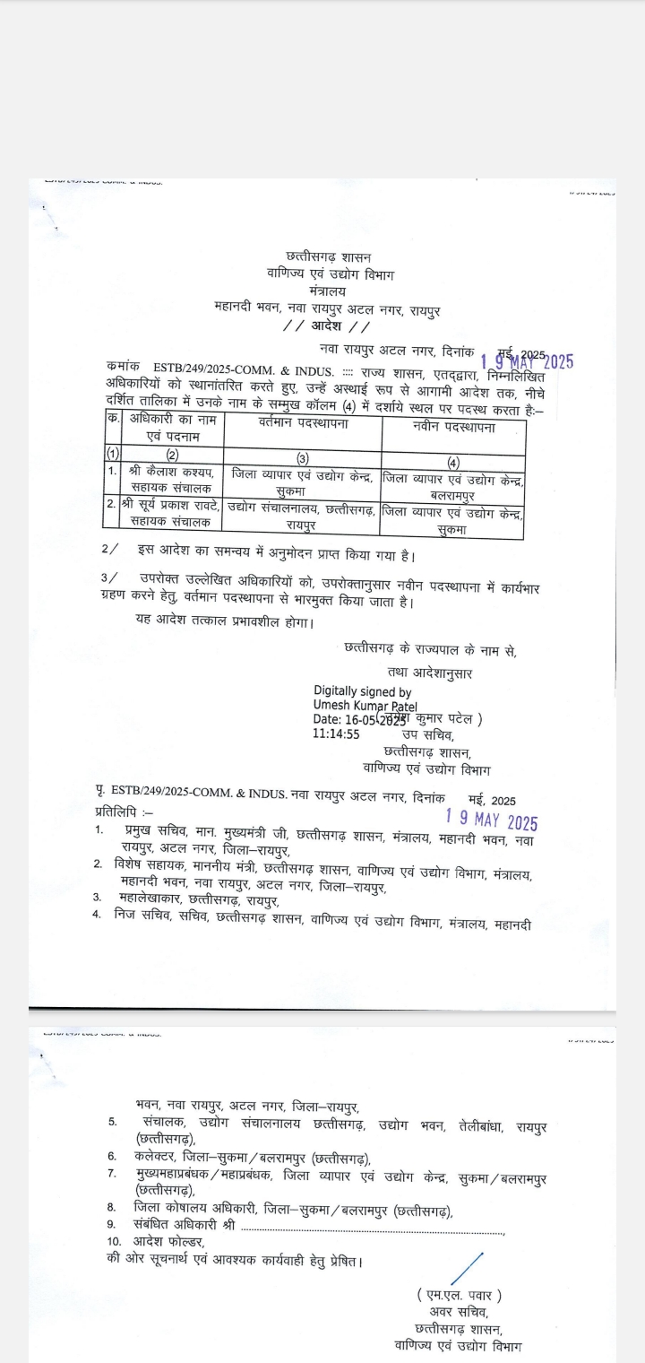 ज्ञातव्य हो कि सुकमा जिले के कोंटा विकासखंड के पूर्व सीईओ जिन्हें वर्ष 2021-2023 तक प्रभारी सीईओ की जिम्मेदारी दी गई थी। इस अवधि में उन पर अमृत सरोवर, रीपा योजना, मनरेगा सहित अन्य योजनाओं में महज कागजों में कार्य दिखाकर करोड़ों की राशि की बंदरबांट करने के गंभीर आरोप लगे हैं।शिकायतकर्ता द्वारा 100 करोड़ से अधिक के भ्रष्टाचार किए जाने की शिकायत केन्द्रीय सचिव से की गई है। इस दागी अधिकारी को वर्तमान में उद्योग विभाग के सहायक संचालक की जिम्मेदारी सौंप दी गई है।
