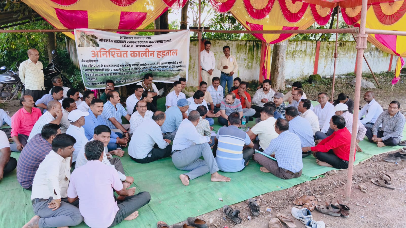 कवर्धा,,,अधिकारी कर्मचारी संघ भोरमदेव शक्कर कारखाना द्वारा , डीए बढ़ोतरी, क्रमोन्नति पदोन्नति, एवं ग्रेजुएटी जैसे जायज मांग को लेकर अपनी तीन सूत्रीय मांगों को पांचवे दिवस प्रबंधन द्वारा अनसुनी की जा रही है ,।