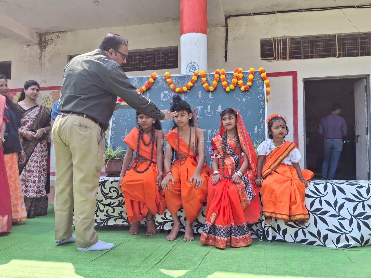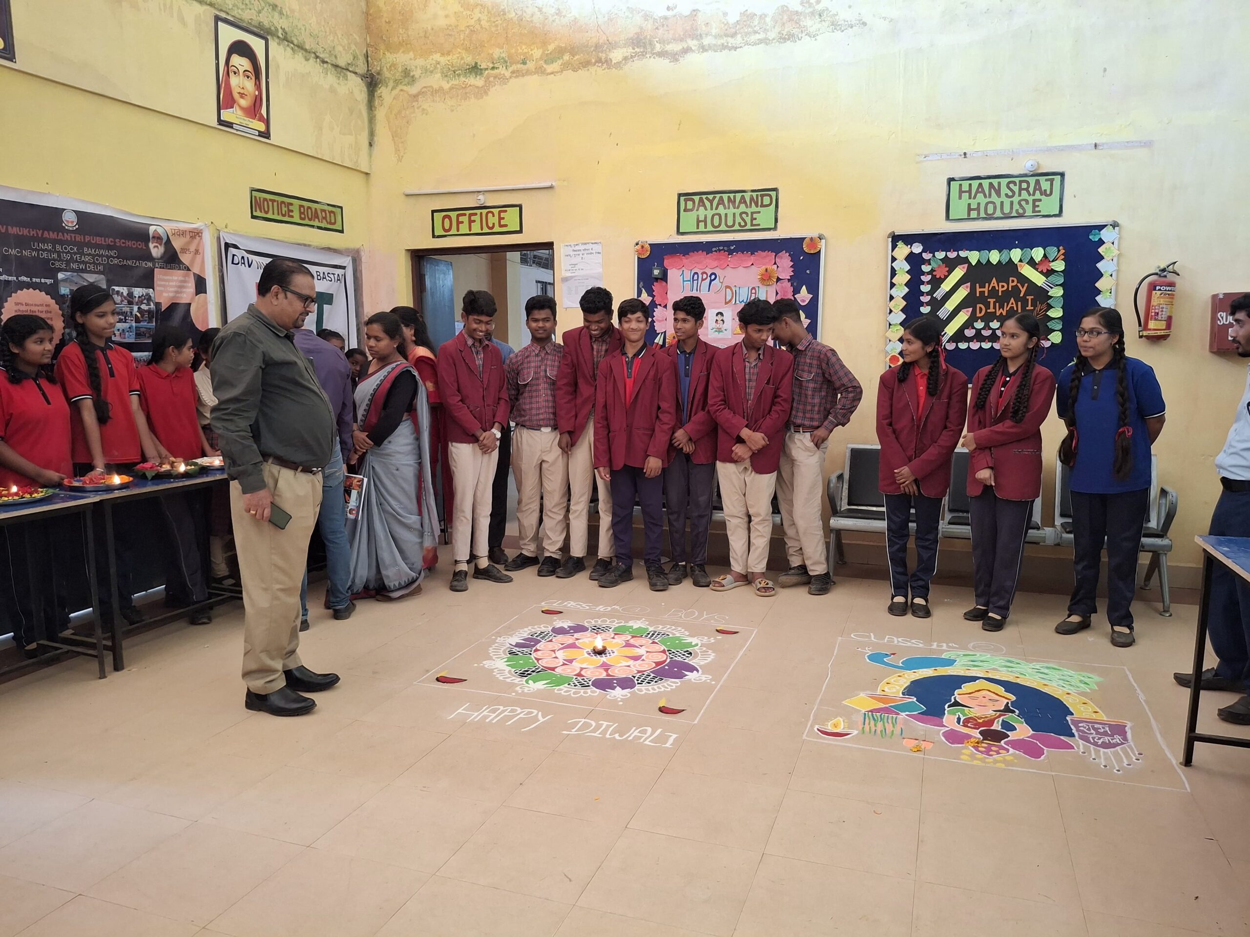 डीएवी स्कूल में बिखरी दीयों, रंगोली और फूलों की आभा
