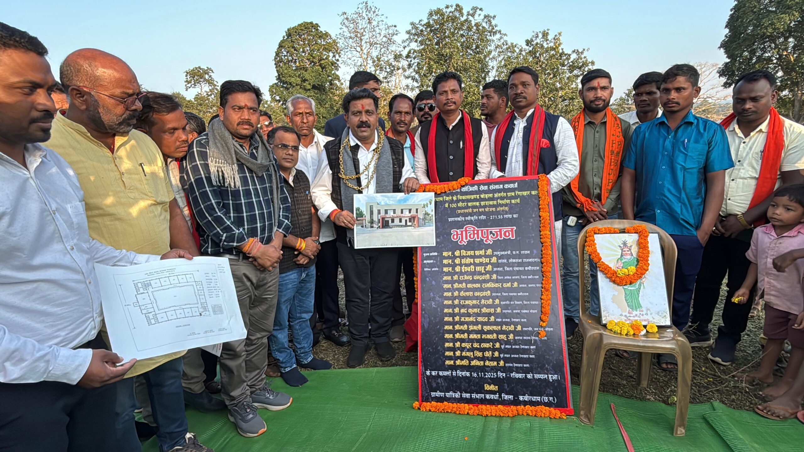 कवर्धा,,, सुदूर वनांचल क्षेत्र के शैक्षणिक भविष्य को नई दिशा देने की ऐतिहासिक पहल करते हुए उपमुख्यमंत्री विजय शर्मा ने आज रेंगाखार कला में 2 करोड़ 71 लाख रुपए की लागत से निर्मित होने वाले 100 सीटर बालक छात्रावास निर्माण कार्य का विधिवत भूमिपूजन किया। दूरस्थ और जनजातीय अंचलों में गुणवत्तापूर्ण शिक्षा को सुदृढ़ करने की राज्य सरकार की प्रतिबद्धता का यह एक और महत्वपूर्ण कदम है।