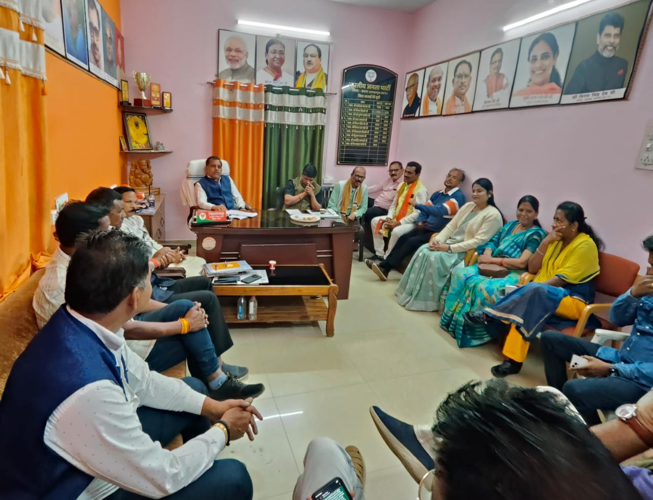 जगदलपुर। भारतीय जनता पार्टी जिला कार्यालय में आज शुक्रवार को जिलाध्यक्ष वेदप्रकाश पाण्डेय ने नवनियुक्त जिला पदाधिकारियों की महत्वपूर्ण बैठक ली। बैठक में संगठन के आगामी कार्यक्रमों, विशेषकर आत्मनिर्भर भारत कार्यक्रम की रूपरेखा पर विस्तृत चर्चा की गई। साथ ही हाल ही में संपन्न हुए विभिन्न कार्यक्रमों की समीक्षा भी की गई।