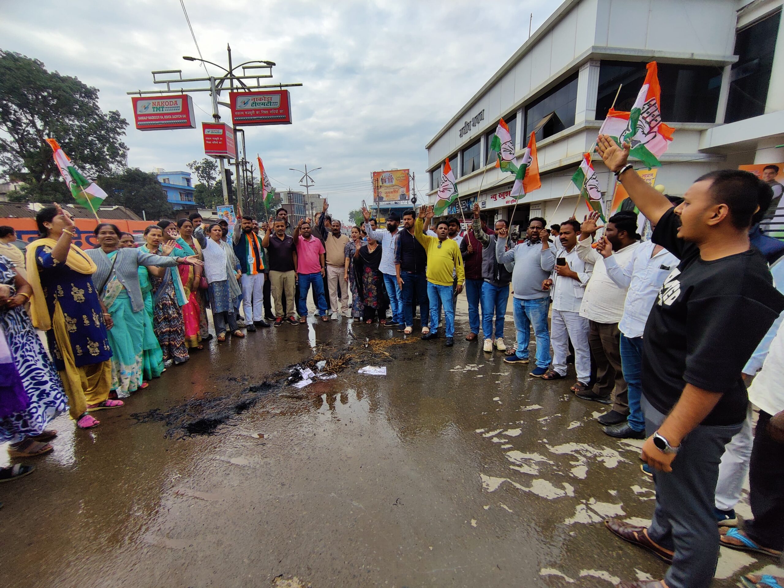 जगदलपुर :- छत्तीसगढ़ प्रदेश कांग्रेस कमेटी के निर्देश पर बस्तर जिला कांग्रेस कमेटी शहर/ग्रामीण के संयुक्त तत्वाधान में शहर कांग्रेस अध्यक्ष सुशील मौर्य प्रेमशंकर शुक्ला ग्रामीण जिलाध्यक्ष के नेतृत्व में कांग्रेस पदाधिकारी व कार्यकर्ताओं के द्वारा केन्द्र की मोदी सरकार द्वारा राजनैतिक विद्वेषवश सत्ता का दुरूपयोग करते हुए केन्द्रीय एजेन्सियों प्रवर्तन निदेशालय, सी.बी.आई.आयकर सहित विभिन्न संवैधानिक संस्थाओं का गलत इश्तेमाल कर भारतीय राष्ट्रीय कांग्रेस के पूर्व राष्ट्रीय अध्यक्षद्वय श्रीमती सोनिया गांधी जी एवं श्री राहुल गांधी जी को नेशनल हेराल्ड मामले को लेकर किए गये एफआईआर के विरोध में प्रधानमंत्री एवं प्रवर्तन निदेशालय (ED) पुतला दहन किया गया …