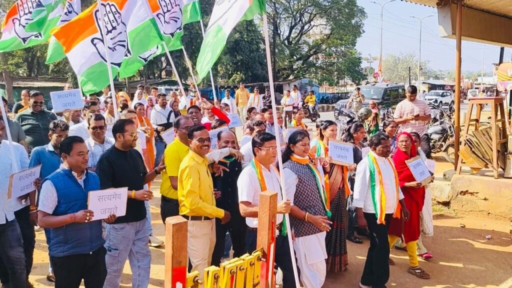 बीजापुर :- छत्तीसगढ़ प्रदेश कांग्रेस कमेटी के निर्देश पर गुरुवार को जिला कांग्रेस कमेटी बीजापुर ने नेशनल हेराल्ड मामले में बड़ा प्रदर्शन किया। दिल्ली की एक अदालत द्वारा प्रवर्तन निदेशालय (ईडी) की मनी लॉन्ड्रिंग शिकायत को खारिज करने के बाद कांग्रेस कार्यकर्ताओं ने बीजापुर स्थित भारतीय जनता पार्टी (भाजपा) के जिला कार्यालय का घेराव करते हुए केंद्र की मोदी सरकार पर राजनीतिक बदले की भावना से कांग्रेस नेताओं को फंसाने का आरोप लगाया।