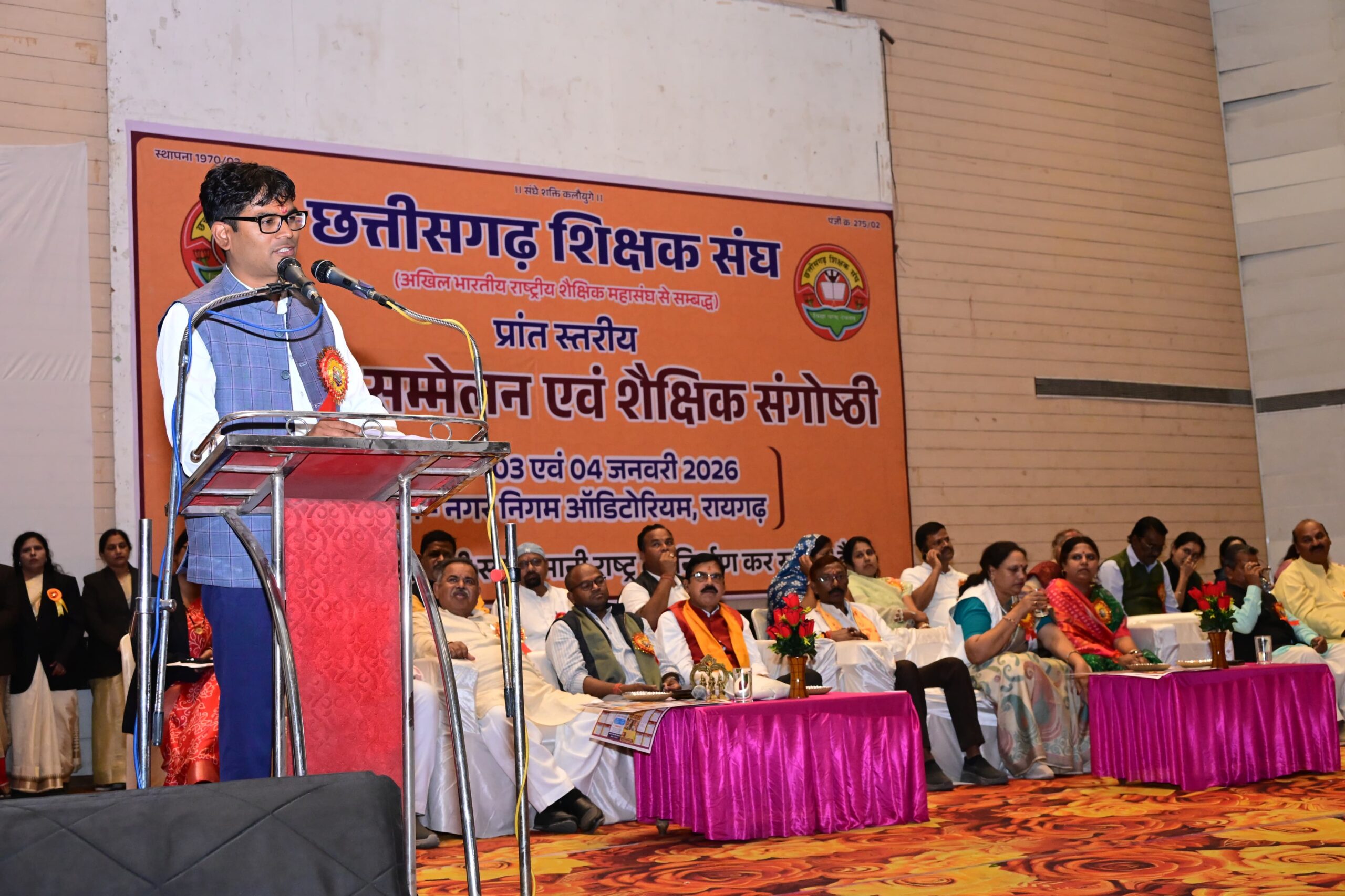 कवर्धा,,, कवर्धा छत्तीसगढ़ शिक्षक संघ का राज्यस्तरीय शिक्षक सम्मेलन एवं शैक्षिक संगोष्ठी रायगढ़ में दिनांक 3से 4 जनवरी 2026 तक आयोजित किया गया था, जिसमें चिंतन मंथन के पश्चात 9 विभिन्न विषयों का आग्रह पत्र मुख्य अतिथि ओ पी चौधरी वित्त मंत्री छत्तीसगढ़ शासन, माननीय सांसद रूपकुमारी चौधरी की उपस्थिति में