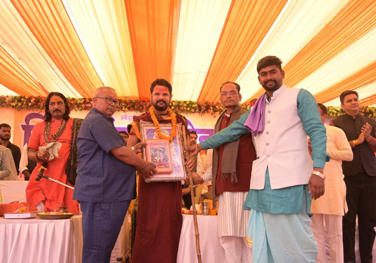 मुख्य अतिथि के रूप में उपस्थित छत्तीसगढ़ के सुप्रसिद्ध कथा वाचक पंडित युवराज पांडे ने सर्व प्रथम शंखनाद करते हुए मंत्रोच्चार करने के पश्चात गर्म जोशी के साथ जयघोष किया,सभा को प्रणाम करते हुए कहा कि भारत बुद्ध और युद्ध का देश है, उन्होंने धर्म और राष्ट्र के अंतर्संबंधों पर प्रकाश डाला। उन्होंने कहा,शस्त्र और शास्त्र दोनों का ज्ञान होना चाहिए दोनों ही जीवन का आधार है। रामचरित मानस में जीवन का सार है, समरसता का भाव और संदेश है। राष्ट्र का मंगल करे वह राम है। भागवत के विभिन्न श्लोकों के माध्यम से भगवान कृष्ण के उपदेशों का वर्णन किया। भारत देश की आजादी के लिए शहीद हुए वीर शहीदों के बारे में बताया। राष्ट्र प्रेम से बड़ा कोई धर्म नहीं है।सुप्रसिद्ध कथावाचक युवराज पांडे ने अपनी ओजस्वी वाणी से युवाओं में राष्ट्र प्रेम का संचार किया। उन्होंने कथा के माध्यम से धर्म और राष्ट्र रक्षा के महत्व को समझाया। पंडित जी ने सभी से अनुरोध करते हुए वृक्ष लगाने और माता पिता का सम्मान देने के लिए कहा। उन्होंने सभी को नशा छोड़ने को कहा। नशे जैसी सामाजिक बुराइयों से दूर रहने की कड़ी चेतावनी दी। उन्होंने स्पष्ट किया कि नशा न केवल शरीर को, बल्कि समाज और धर्म की जड़ों को भी खोखला करता है। उन्होंने युवाओं को समाज के प्रति सक्रिय होने का आह्वान किया। उन्होंने कहा कि हिंदू समाज की मजबूती के लिए युवाओं को एकजुट होकर कार्य करना होगा।