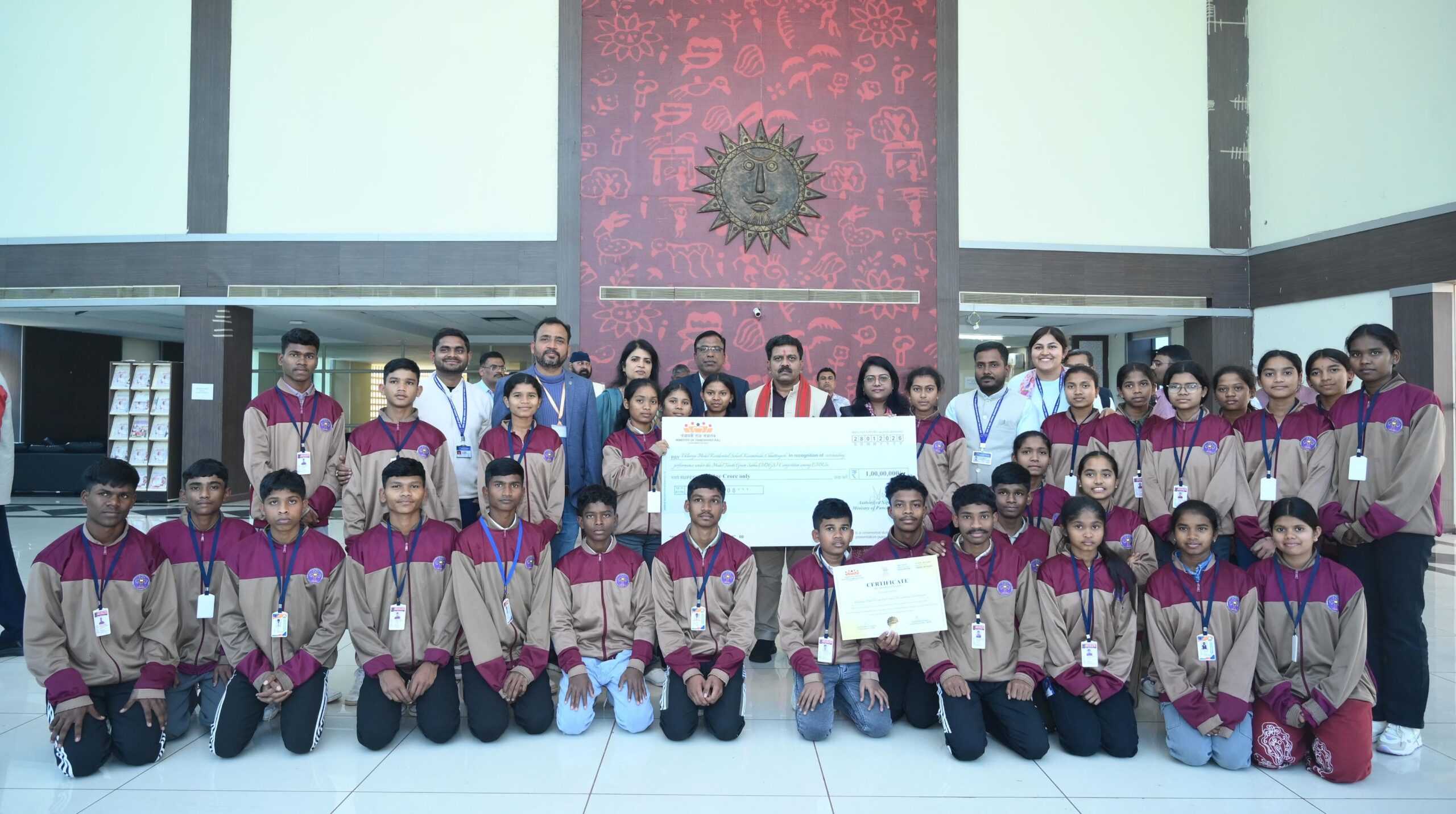 इस उपलब्धि पर विद्यालय को प्रशस्ति पत्र के साथ एक करोड़ रुपये की प्रोत्साहन राशि संस्थान के विकास हेतु प्रदान की गई है। यह सफलता न केवल विद्यालय बल्कि संपूर्ण छत्तीसगढ़ राज्य के लिए गौरव का विषय है। इस अवसर पर प्रमुख सचिव सुश्री निहारिका बारिक, संचालक पंचायत विभाग सुश्री प्रियंका महोबिया ने विद्यालय के प्राचार्य डॉ. कमलाकंत यादव एवं सभी बच्चों को बधाइयां दीं।
