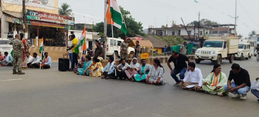 मनरेगा कानून को बहाल करने और धान खरीदी की तिथि बढ़ाने की मांग को लेकर कांग्रेस का धरना-प्रदर्शन व चक्काजाम