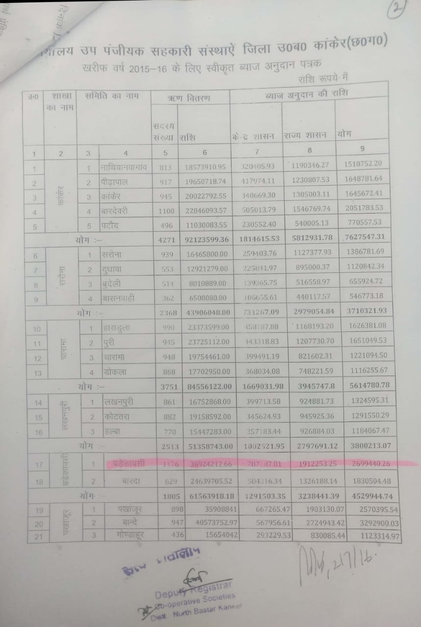 मजे की बात तो यह है कि इस ब्याज अनुदान की राशि को जोड़कर शासन की ओर प्रस्तुत करने में बड़े कापसी लैम्पस प्रभारी प्रबंधक ने जिला सहकारी बैंक के तत्कालीन शाखा प्रबंधक नरेंद्र कुमार शर्मा से मिलकर ऑडिट करने आये ऑडिटरों से सांठगांठ कर ऑडिट करवा लिया।और शासन को लाखों रुपये का वित्तीयहानि पहुचाया।