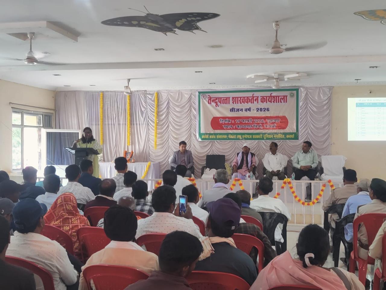तेंदूपत्ता सीजन वर्ष 2026 में तेंदूपत्ता संग्रहण दर 5500/- रू. प्रति मानक बोरा तथा शाखकर्तन कार्य दर 70/- रू. प्रति मानक बोरा निर्धारित है। जिला यूनियन कवर्धा अंतर्गत कुल 19 समितियां, 24 लॉट एवं 269 फड़ संचालित है। प्रशिक्षण में शाख कर्तन (बूटा कटाई) के बारे में विस्तृत जानकारी दी गई जिसमें शाख कर्तन (बूटा कटाई) क्यों करे, कब करें, कहां करें, कैसे करें, निरीक्षण, भुगतान एवं महत्वपूर्ण सावधानियां के बारे में पावरप्वाईंट प्रजेंटेश के माध्यम से विस्तृत जानकारी दी गयी।