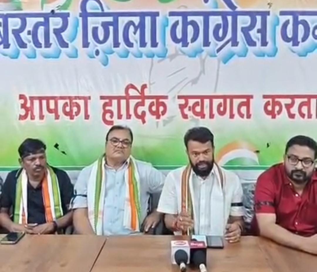 जगदलपुर। आज राजीव भवन जगदलपुर में प्रेसवार्ता को संबोधित करते हुए बस्तर जिला कांग्रेस कमेटी शहर अध्यक्ष सुशील मौर्य ने भाजपा सरकार पर जमकर हमला बोला। शहर जिला कांग्रेस अध्यक्ष सुशील मौर्य और अन्य कांग्रेसजन काली पट्टी बांधे हुए थे।