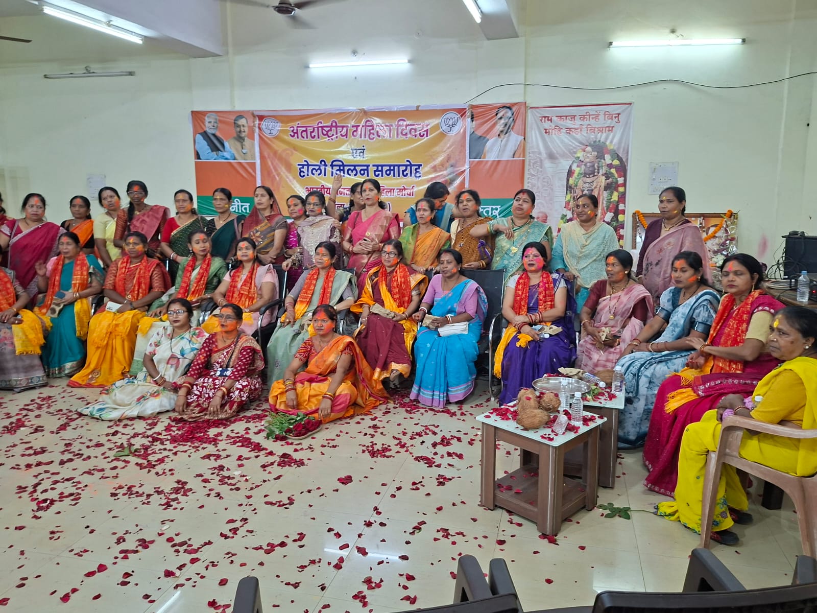 फूलों की पंखड़ियों से किया एक दूसरे का अभिनंदन, भाजपा महिला मोर्चा का होली मिलन