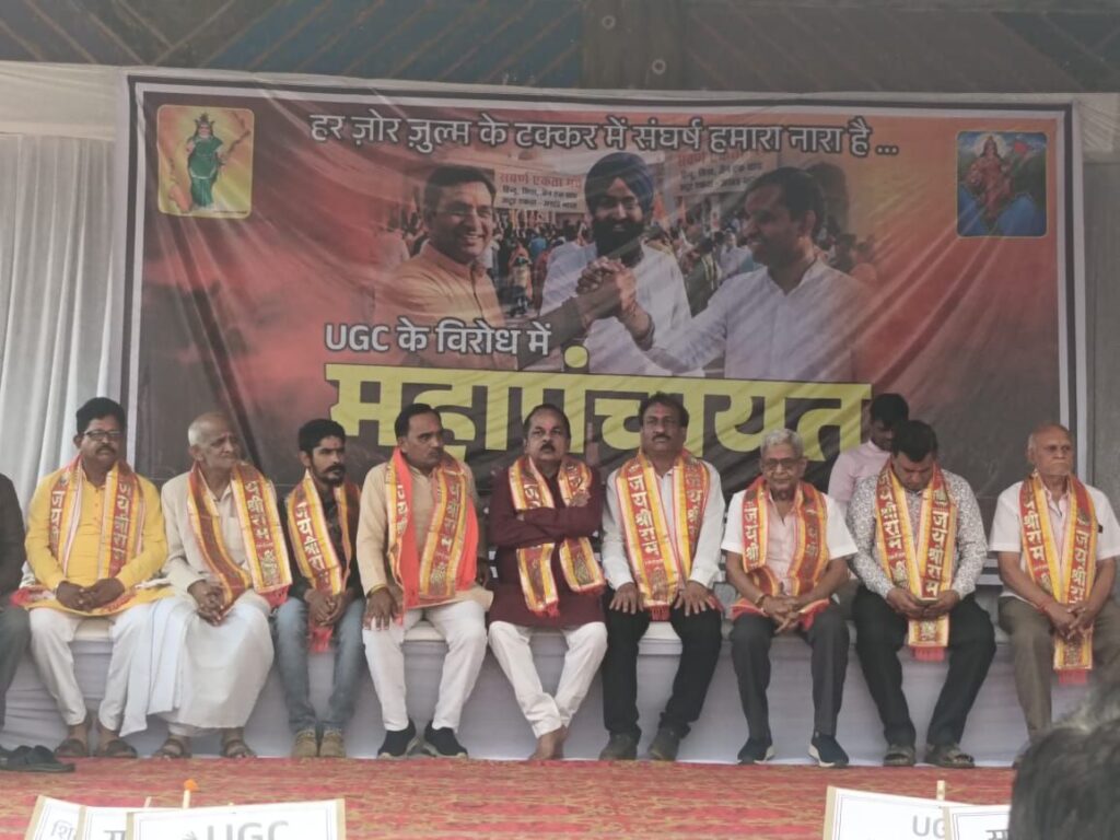 महापंचायत में उपस्थित ब्राह्मण समाज, राजपूत समाज, जैन समाज, गुप्ता समाज, अग्रवाल समाज, केसरवानी समाज, ठाकुर समाज, माहेश्वरी समाज, सिंधी समाज, सिक्ख समाज के साथ साथ अन्य स्वर्ण समाज प्रमुखों और वक्ताओं ने केंद्र सरकार द्वारा लाए गए नए यूजीसी एक्ट 2026 का कड़ा विरोध करते हुए इसे स्वर्ण समाज के विद्यार्थियों के शिक्षा अधिकारों के लिए नुकसानदायक बताया। वक्ताओं ने कहा कि यह कानून शिक्षा के क्षेत्र में जबरदस्ती लागू किया जा रहा है और इससे समाज के युवाओं के भविष्य पर नकारात्मक प्रभाव पड़ सकता है। उन्होंने इस कानून को “काला कानून” बताते हुए इसे तत्काल वापस लेने की मांग की।