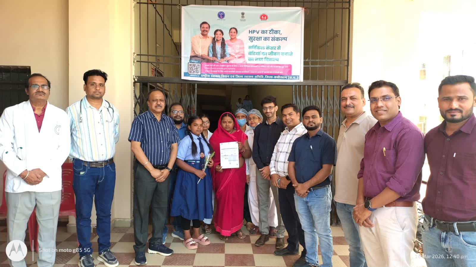 कवर्धा,,,कबीरधाम जिला चिकित्सालय में सोमवार, 16 मार्च 2026 से एच.पी.वी. (ह्यूमन पैपिलोमा वायरस) टीकाकरण की शुरुआत कर दी गई है। वर्तमान में जिले में केवल जिला चिकित्सालय में ही एच.पी.वी. का टीकाकरण किया जा रहा है। अभियान के पहले दिन सोमवार को दो बालिकाओं को एच.पी.वी. का टीका लगाया गया। यह टीकाकरण प्रतिदिन रविवार एवं अन्य अवकाश के दिनों को छोड़कर आयोजित किया जाएगा। टीकाकरण का समय सुबह 10 बजे से शाम 4 बजे तक निर्धारित किया गया है।