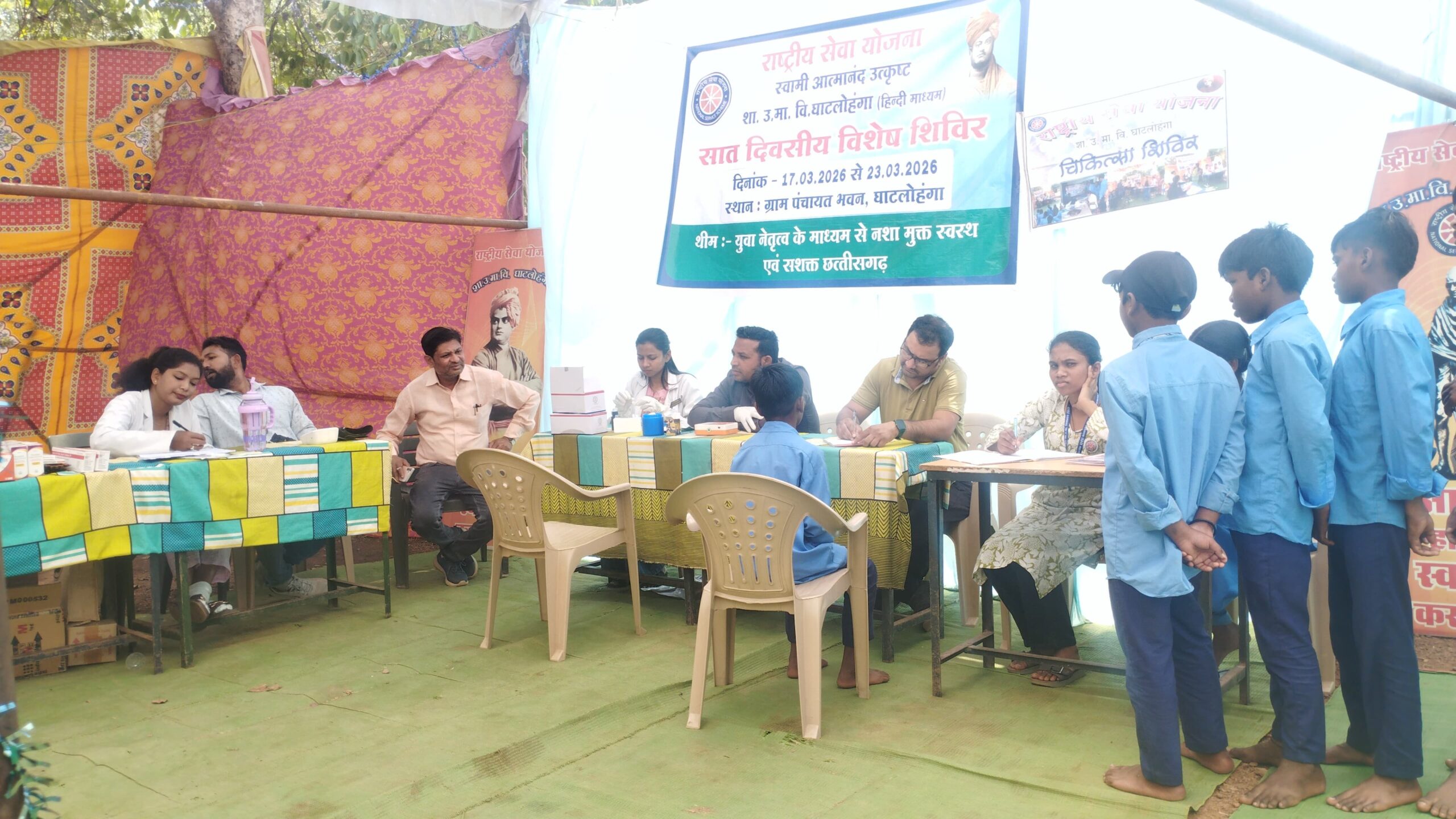 जगदलपुर:- राष्ट्रीय सेवा योजना इकाई, शासकीय उच्चतर माध्यमिक विद्यालय घाटलोहंगा द्वारा दिनांक 17/03/2026 से 23/03/2026 तक सात दिवसीय विशेष शिविर का आयोजन किया जा रहा है। इस विशेष शिविर का उद्देश्य ग्रामीण क्षेत्रों में जनजागरूकता फैलाना, सामाजिक सेवा के प्रति विद्यार्थियों को प्रेरित करना एवं समाज के विभिन्न वर्गों को लाभान्वित करना है।