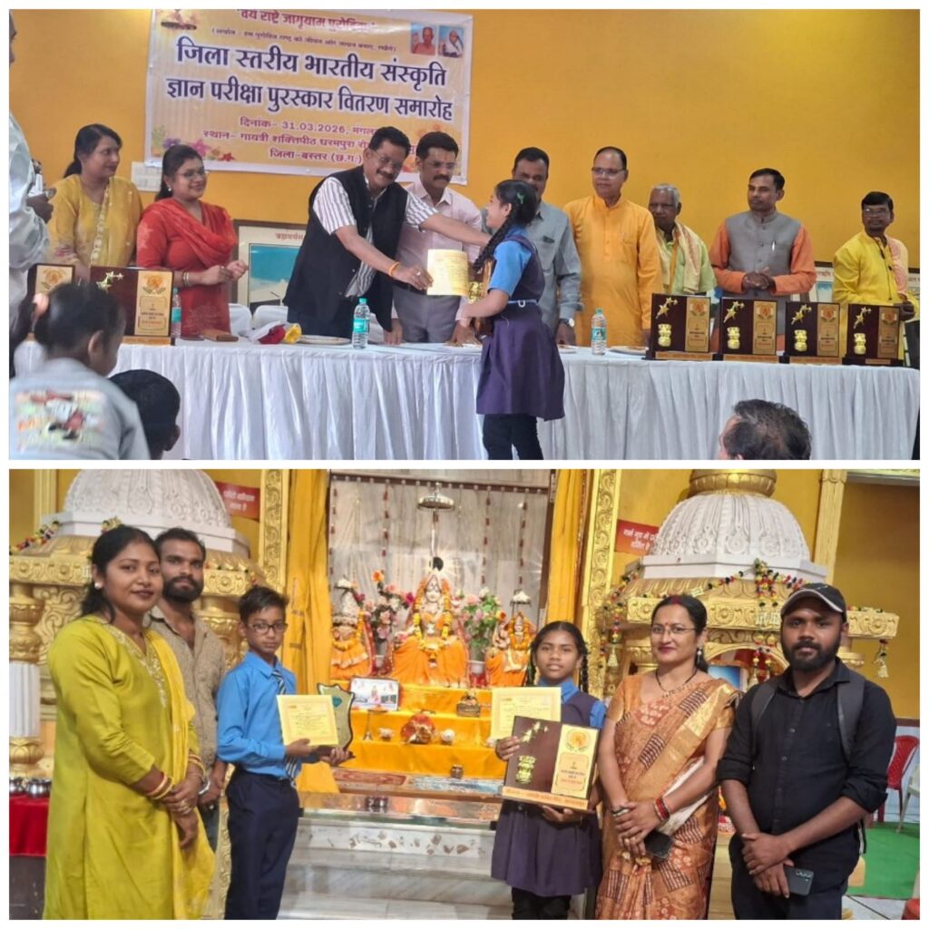 बकावंड। गायत्री शक्तिपीठ के तत्वावधान में आयोजित भारतीय संस्कृति ज्ञान परीक्षा 2025–26 में पूर्व माध्यमिक शाला बीजागुड़ा, छोटे देवड़ा कलस्टर सरगीपाल के विद्यार्थियों ने उत्कृष्ट प्रदर्शन करते हुए क्षेत्र का नाम गौरवान्वित किया है। सफल विद्यार्थियों को महापौर संजय पाण्डेय और जिला शिक्षा अधिकारी बीआर बघेल ने प्रमाण पत्र वितरित किए तथा बधाई दी।