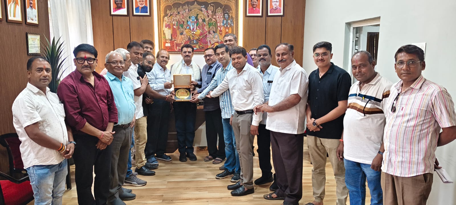 नगर निगम कार्यालय में महापौर संजय पांडे सहित निगम के पार्षदों ने समाज के सदस्यों के साथ प्रस्तावित प्रतिमा स्थल को लेकर विस्तारपूर्वक चर्चा की। बैठक में प्रतिमा के लिए उपयुक्त स्थान, सौंदर्यीकरण, पहुंच मार्ग तथा आसपास की सुविधाओं के संबंध में आवश्यक विचार-विमर्श किया गया। चर्चा उपरांत गुजराती समाज के पदाधिकारियों ने अपने महत्वपूर्ण सुझाव भी प्रस्तुत किए, जिन पर सकारात्मक सहमति बनी।