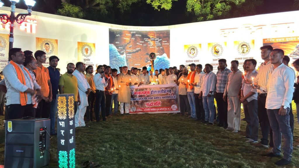 कवर्धा,,,छत्तीसगढ़ के नक्सल मुक्त होने की ऐतिहासिक उपलब्धि के उपलक्ष्य में एवं शहीद हुए वीर जवानों की स्मृति में भाजयुमो प्रदेश अध्यक्ष राहुल टिकरिहा जी के निर्देशानुसार भाजपा जिलाध्यक्ष राजेन्द्र चंद्रवंशी जी के मार्गदर्शन मे भाजयुमो जिलाध्यक्ष उमंग पाण्डेय के नेतृत्व मे श्रद्धांजलि एवं दीपदान कार्यक्रम आयोजित किया गया..