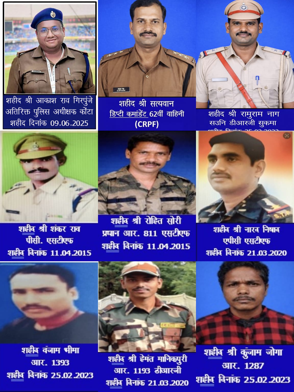 जगरगुंडा आश्रम के पास हुए हमले में 3 जवान शहीद हो गए थे। टेकलगुडम कैंप स्थापना दौरान हमले में 3 जवान शहीद हुए थे।पोकलेन आगजनी सूचना पर कार्रवाई के दौरान एएसपी आकाश राव आई ईडी ब्लास्ट में शहीद हो गए थे। इन अमर शहीदों का बलिदान ही नक्सल मुक्त सुकमा की नींव है। उनका त्याग सदैव राष्ट्र को प्रेरित करता रहेगा।