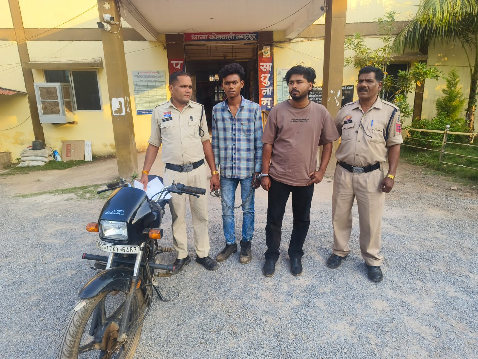 जगदलपुर:- पुलिस अधीक्षक, श्री शलभ कुमार सिन्हा के नेतृत्व मेें बस्तर पुलिस के द्वारा नशे तथा अपराधिक तत्वों के विरूद्ध व्यापक रूप से लगातार कार्यवाही किया जा रहा है जो इसी तारतम्य में अवैध मादक पदार्थ नशीली टेबलेट/कैप्सूल बिक्री करने वाले पर, कार्यवाही करने में कोतवाली पुलिस को बड़ी सफलता मिली है। ज्ञात हो कि थाना कोतवाली जगदलपुर को सूचना प्राप्त हुआ था कि दो व्यक्ति सन सिटी अटल आवाश के रोड किनारे मोटर सायकल में नशीली टेबलेट/कैप्सूल बिक्री करने ग्राहक के इंतजार में खड़ा है, कि सूचना पर पुलिस अधीक्षक, श्री शलभ कुमार सिन्हा के दिशानिर्देशन में अति. पुलिस अधीक्षक श्री माहेश्वर नाग के मार्गदर्शन में एवं नगर पुलिस अधीक्षक श्री सुमित कुमार डी धोत्रे के पर्यवेक्षण में थाना प्रभारी कोतवाली लीलाधर राठौर के नेतृत्व में टीम गठित कर, कार्यवाही हेतु टीम रवाना किया गया था जो उक्त टीम के द्वारा सन सिटी अटल आवाह रोड के पास पहुंचकर घेराबंदी कर, मुखबिर द्वारा बताए गए हुलिया के आधार पर दो व्यक्तियों को घेराबंदी कर पकड़ा गया, जिनसे पूछताछ करने पर अपना उन्होंने अपना अपना नाम 01 आशीष जार्ज पिता राजू जार्ज उम्र 23 साल पता कुम्हारपारा मां भवानी चौक जगदलपुर थाना कोतवाली जिला बस्तर, 02 डीगेश्वर देवदास उर्फ शूटर पिता हेमलाल देवदास उम्र 22 साल पता कुम्हार पारा अब्दुल कलाम वार्ड 40 शंकर मंदिर गली थाना बोधघाट जगदलपुर जिला बस्तर का होना बताया जिनके कब्जे से प्रतिबंधित अल्प्राजोलम की नशीली टेबलेट 870 नग बरामद हुआ, जो बरामद हुए प्रतिबंधित नशीली दवाओं के संबंध में पूछताछ करने पर रखने के संबंध में कोई वैधानिक प्रत्युत्तर नहीं दिया गया तथा नशीली टेबलेट बिक्री करने के लिए रखना स्वीकार करने से प्रतिबंधित अल्प्राजोलम नशीली दवाओं को धारा 21(B) NDPS एक्ट के तहत विधिवत् जप्त कर आरोपीगण आशीष जार्ज तथा डीगेश्वर देवदास को आज दिनांक 10.04.26 को