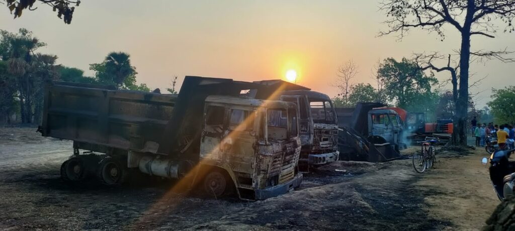 बीती रात माओवादियों ने मिंगाचल बस्ती में रेत ठेकेदार के रेत डंप साईड में पहुंच कर वहां खड़ी 6 टिप्पर वाहन और दो जेसीबी मशीनों को आग के हवाले कर दिया है । घटना स्थल सीआरपीएफ मुख्यालय से महज दो किलोमीटर दूर और थाने से तीन किलोमीटर की दूरी पर स्थित है । लंबे समय के बाद माओवादियों ने एनएच 63 के करीब आकर इस तरह की बड़ी घटना को अंजाम देकर चले गए हैं, वहीं जिले के फायर ब्रिगेड के कर्मचारियों के जज्बे ने सभी को चौंका दिया है , घटना के कुछ समय के बाद ही फायर ब्रिगेड की टीम घटना स्थल पहुंच कर आग पर काबू पाने का प्रयास किया । जबकि माओवादी घटना के बाद एकाएक घटना स्थल पहुंचना सम्भव नही होता, इसके बावजूद फायर ब्रिगेड के कर्मचारी खुद की परवाह किये बिना घटना स्थल पहुंच गए थे । मुख्य मार्ग पर घटित इस घटना के बाद से एक बार फिर क्षेत्र में दहशत का माहौल व्याप्त हो गया है, इस मार्ग से गुजरने वाले एनएच 63 को सुरिक्षत मानते थे, किंतु इस घटना ने सभी के दिल मे माओवादी दहशत पैदा कर दिया है ।