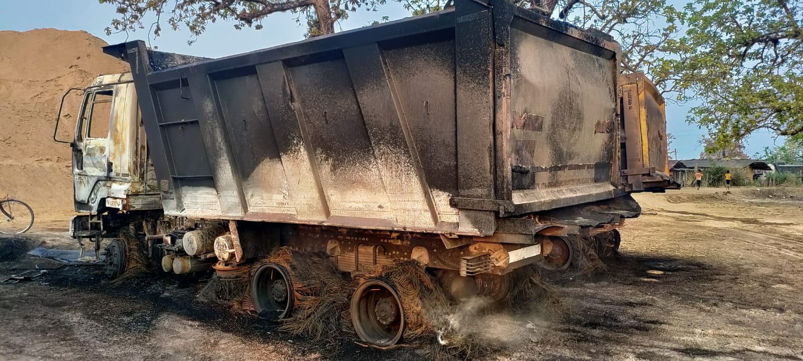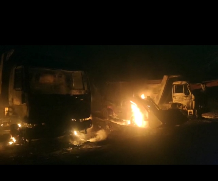 बीजापुर :- जिले के नैमेड थाना क्षेत्र के एनएच पर स्थित मिंगाचल बस्ती में माओवादियों ने बीती रात 9 बजे के आसपास बड़ी घटना को अंजाम देते हुए रेत खनन में लगे 6 टिप्परों और दो जेसीबी मशीनों को आग के हवाले कर दिया है । वाहनों में आगजनी की खबर के बाद पहली बार जिला मुख्यालय से फायर ब्रिगेड की दो गाड़ी घटना स्थल पहुंच कर आग पर काबू पाने का प्रयास किया किंतु आग इतनी ज्यादा लग चुकी थी कि सभी वाहने 80 प्रतिशत जल चुकी है । इस घटना के बाद एक बार फिर एनएच में दहशत का माहौल व्याप्त हो गया है ।