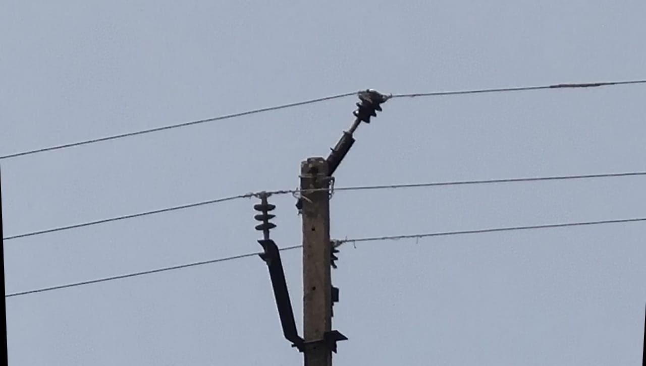 11 केवी की लाइन में लगे खंभे के ऊपर टॉप क्लैंप टूट कर बिजली तार के सहारे झुकी, हादसों को दे रहा आमंत्रण