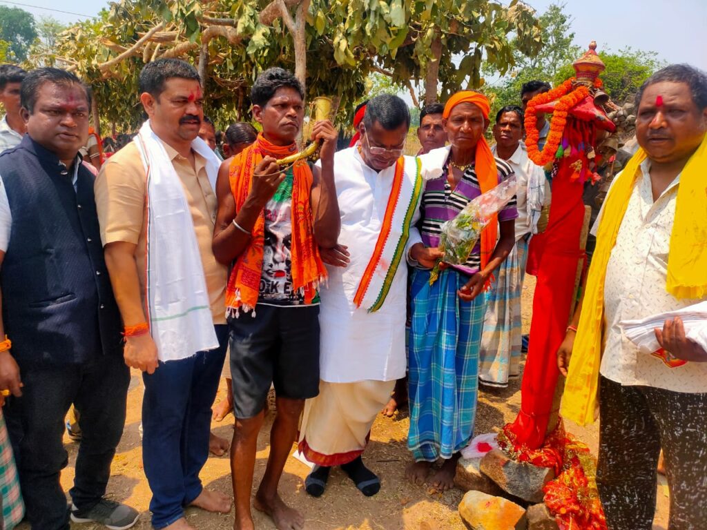 बीजापुर :- छत्तीसगढ़ के उद्योग एवं आबकारी व बीजापुर ज़िले के प्रभारी मंत्री 27 अप्रैल से बीजापुर के दौरे पर है इस दौरान वे विभिन्न कार्यक्रमों में सम्मिलित होंगे। अपने दौरे की शुरुआत बीजापुर के विधायक एवं बस्तर क्षेत्र आदिवासी विकास प्राधिकरण के उपाध्यक्ष विक्रम शाह मंडावी के साथ वे भैरमगढ़ के ऐतिहासिक भैरम बाबा मंदिर पहुँचे और बाबा के दर्शन कर प्रदेश की सुख समृद्धि की क़ामना की। इसके बाद मंत्री कवासी लखमा और विधायक विक्रम शाह मंडावी जातरा में आमंत्रित देवी-देवताओं का आशीर्वाद लेकर विभिन्न गाँवों से आए पुजारियों, परगनाओं और ग्राम प्रमुखों से मुलाक़ात की और मेले का भ्रमण किया। हर वर्ष की भाँति इस वर्ष भी पिछले मंगलवार से भैरमगढ़ के भैरम बाबा मंदिर प्रांगण में जातरा का आयोजन हुआ है जात्रा में बाबा के दर्शन के लिए बढ़ी संख्या में श्रद्धालु आते है।