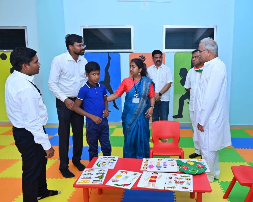 मुख्यमंत्री बघेल ने इस दौरान एक्टिविटी कक्ष में मूक-बधिर बच्चों कार्तिक बेलसरिया और अमितेष अंगनपल्ली से मिलकर उनका उत्साहवर्धन किया। मुख्यमंत्री ने बच्चों की हारमोनियम और ढोलक की जुगलबंदी की तारीफ की और उन्हें उज्ज्वल भविष्य की शुभकामनाएं दी। उन्होंने समर्थ परिसर में विशेष शिक्षा कक्ष में बच्चों के साथ बैठकर उनके शिक्षण स्तर को जांचा। कुमारी रोजा कोड़े ने उन्हें 1 से 10 तक संख्याओं को क्रम में जमाकर बताया, जिस पर मुख्यमंत्री ने उनकी सराहना की। प्रशिक्षकों ने बताया कि यहाँ बच्चों को टीचिंग लर्निंग मटेरियल के माध्यम से सिखाया जाता है। मुख्यमंत्री ने फिजियोथेरेपी कक्ष में शारिरिक रूप से कमजोर बच्चों को मसल पावर विकसित करने के लिए दिए जा रहे थेरेपी की जानकारी ली। संवेदी कक्ष में दृष्टि बाधित दिव्यांग बच्चे मोहन कुड़ियम, ईश्वर तेलम, संतोष गुज्ज़ा, कवासी जोगा ने मुख्यमंत्री को चीजें स्पर्श कर उनकी पहचान बताई। यहां 21 प्रकार की फिजिकल डिसएबिलिटी वाले बच्चे प्रशिक्षणरत हैं । यहां दृष्टिबाधित बच्चों को हाथों व पैरों के स्पर्श से वस्तुओं एवं रंगों की पहचान और स्वाद चखकर खाद्य पदार्थों को पहचानने का भी प्रशिक्षण दिया जाता है। समर्थ में वर्तमान में बीजापुर जिले के सभी विकासखंड के 40 बच्चे है जिन्हें शासन के द्वारा बच्चों को मुफ्त में भोजन, रहना आदि सभी सुविधाएं दी जा रही हैं। यहाँ मानसिक ,दृष्टि बाधित अन्य दिव्यांग बच्चों को समर्थ के प्रयास से शिक्षित बनाया जा रहा है।