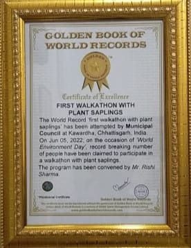 हाथों में पौधे लेकर 4 किमी की पैदल यात्रा, सकरी नदी तट और अपने अपने घर सहित रोपे 3 हजार पौधे, गोल्डन बुक ऑफ वर्ल्ड रिकार्ड में हुआ दर्ज।