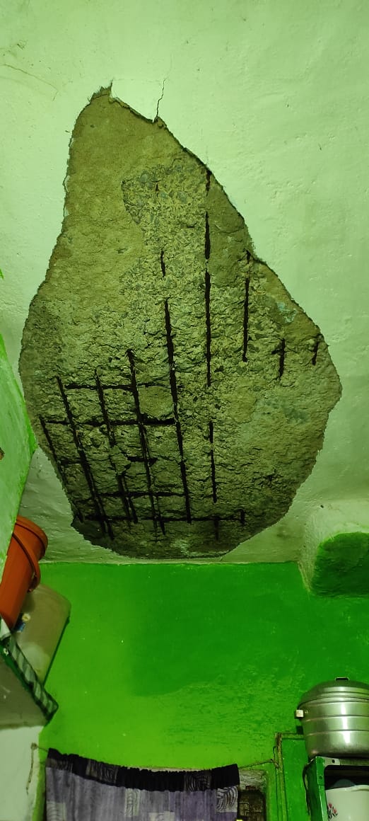 मकान के छज्जा से गिरा फ्लास्टर, बाल बाल बचे निवासरत परिवार, श्रमिक नेताओं की पहल पर तत्काल करवाया गया मरम्मत