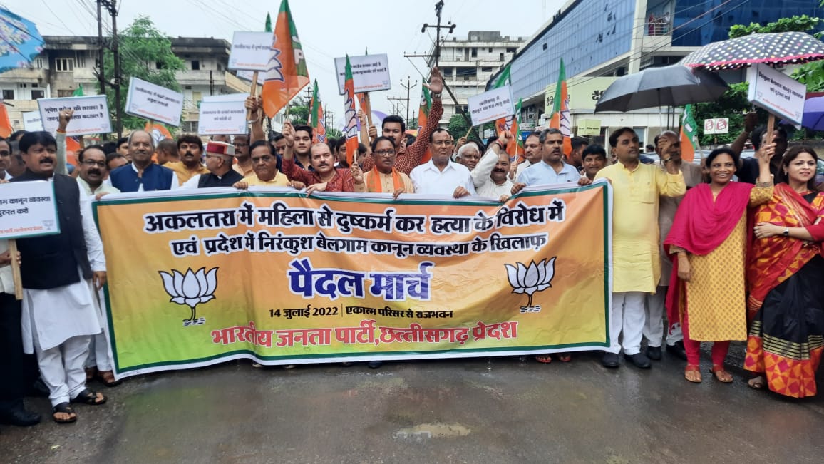 रायपुर :- जांजगीर की निर्भया को न्याय दिलाने भारतीय जनता पार्टी ने आज राजभवन मार्च किया। भाजपा पदाधिकारियों ने महामहिम राज्यपाल अनुसुइया उइके से मुलाकात करके जांजगीर के अकलतरा विधानसभा में हुए निर्भया पार्ट-2 की जघन्य घटना तथा राज्य में हो रही दुष्कर्म की घटनाओं पर सरकार की उदासीनता से अवगत कराते हुए मातृ शक्ति की सुरक्षा के प्रति चिंता व्यक्त की।