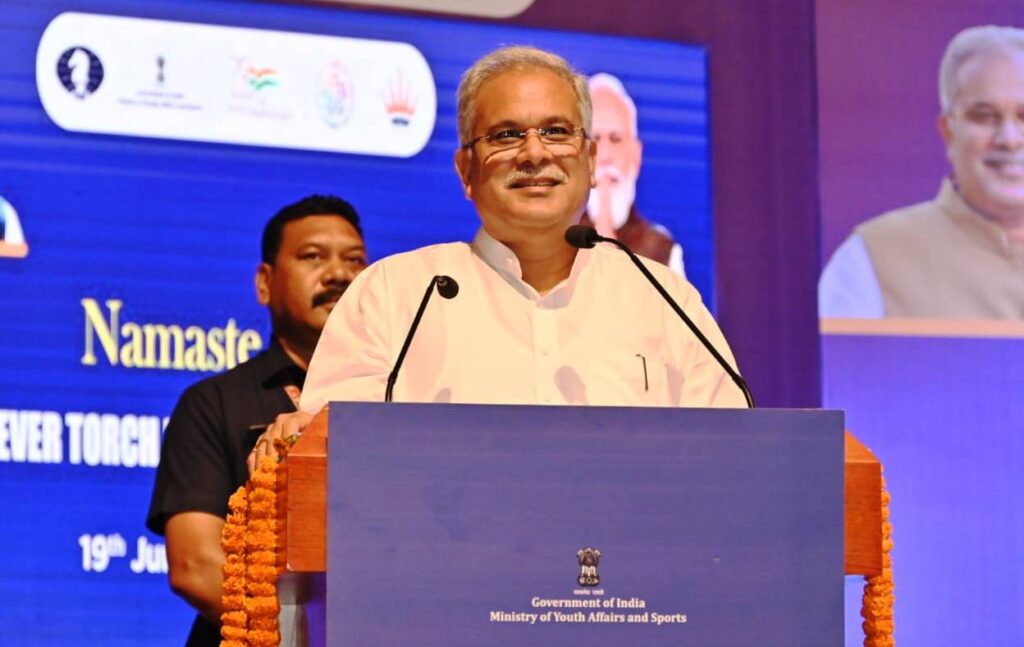 छत्तीसगढ़ में शतरंज ओलंपियाड के मशाल की मौजूदगी यहां के खिलाड़ियों को प्रेरित करेगी, सभी स्कूलों में हो शतरंज खेलने की व्यवस्था – भूपेश बघेल