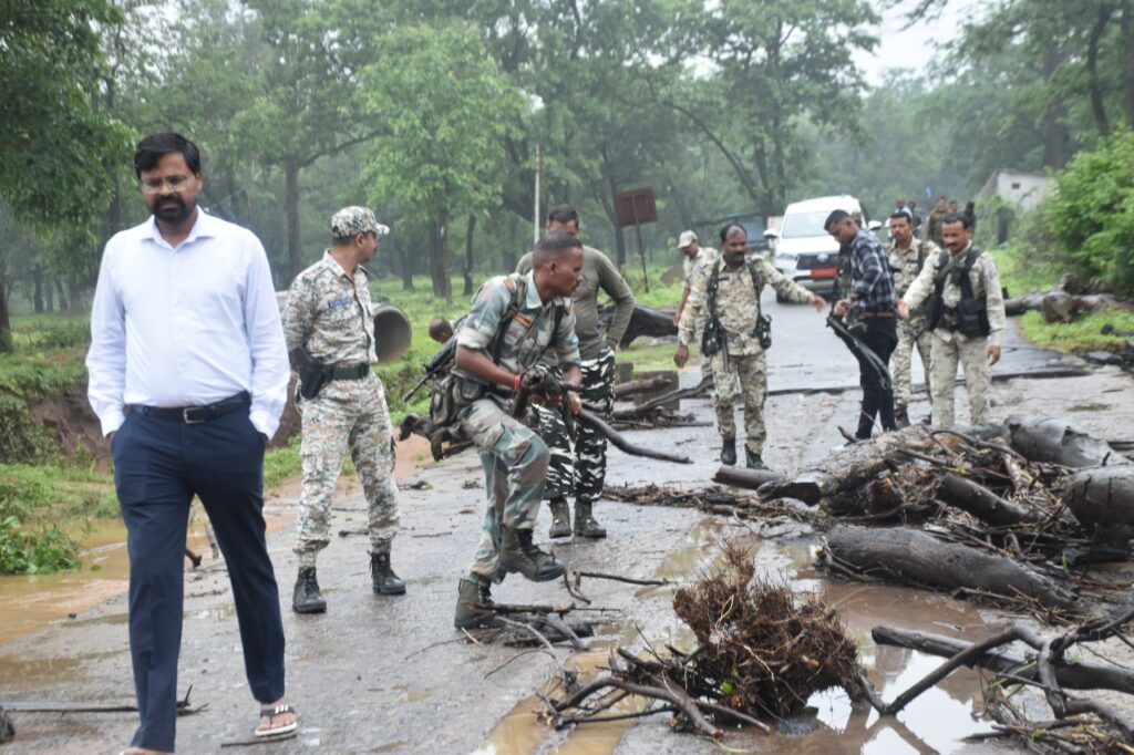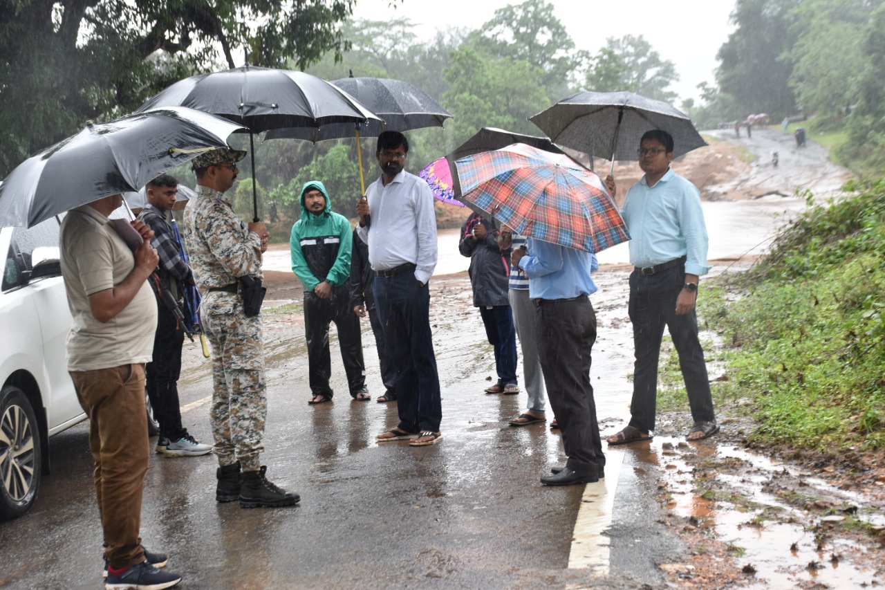 बीजापुर :- कलेक्टर राजेन्द्र कुमार कटारा एवं एसपी आंजनेय वाष्णैय ने बाढ़ प्रभावित क्षेत्र बीजापुर एवं भैरमगढ़ ब्लाक के सुदूर क्षेत्रो का जायजा लिया एवं प्रभावितो को आवश्यक सहयोग एवं क्षतिग्रस्त संपत्ति का शीघ्र मूल्यांकन कर मुआवजा स्वीकृत करने के निर्देश दिए। बाढ़ प्रभावित क्षेत्रों का जायजा लेते हुए पोंजेर नाला का अवलोकन किया। जिसमें नाला के ऊपर बहकर आये लकडियों को हटाने के निर्देश दिए ताकि आवागमन सुचारु रुप से चल सके। वहीं चेरपाल नदी पर उफान आने से आवागमन अवरुद्ध हो गया है। नदी के उस पार ग्रामीणों की हाल-चाल जाना एवं आवश्यक मदद के लिए दिशा-निदेश दिए।