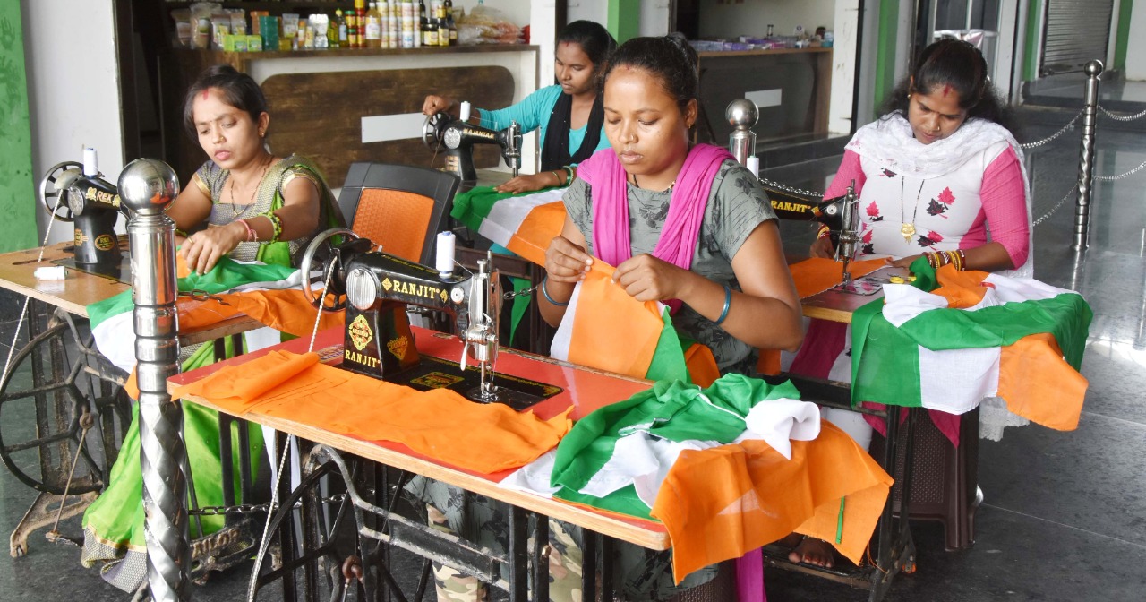 आजादी के अमृत वर्ष को यादगार बनाने के लिए हर घर झंडा कार्यक्रम का आयोजन किया जा रहा है। इस वर्ष स्वतंत्रता दिवस पर हर घर झंडा कार्यक्रम अंतर्गत छत्तीसगढ़ के स्व-सहायता समूह की दीदीयों द्वारा तैयार किया गया तिरंगा झंडा फहराया जाएगा। इस अभियान को सफल बनाने के लिए छत्तीसगढ़ के सभी जिलों की महिला स्वसहायता समूह की दीदीयां मन में देश भक्ति की भावना के साथ तिरंगा झंडा तैयार कर रही है साथ ही स्वयं को आर्थिक रूप से सशक्त कर रही है। दंतेवाड़ा जिले की पार्वती स्व-सहायता समूह की दीदियों द्वारा तिरंगा झंडा बनाया जा रहा है। ये दीदीया झंडे बनाने के काम को महज काम नहीं बल्कि देश सेवा के रूप में देख रही हैं।