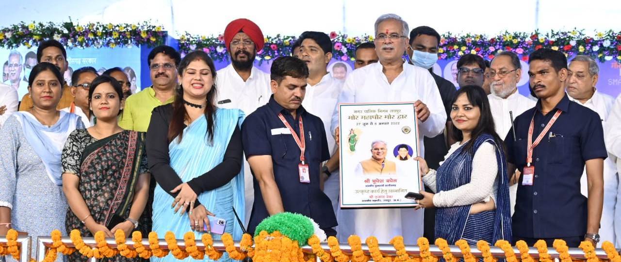 रायपुर :- मुख्यमंत्री भूपेश बघेल ने आज शहर के सुभाष स्टेडियम में आयोजित मोर महापौर मोर द्वार कार्यक्रम में शिरकत की। उन्होंने कार्यक्रम को सम्बोधित करते हुए कहा कि सरकार ने ग्रामीण क्षेत्रों के साथ-साथ शहरी क्षेत्रों में भी विकास की बराबर चिंता की है। आम नागरिकों तक सेवाओं को पहुंचाने के लिए कई सफल योजनाएं संचालित की है। मुख्यमंत्री ने कहा कि अब लोगों को आय, जाति, निवास, शादी का रजिस्ट्रेशन जैसे कागजों के लिए दफतरों के चक्कर नहीं काटने पड़ते, इसके लिए हमने मितान योजना शुरू की हैं। अब इनके जैसे 13 सेवाएं लोगों को घर बैठे मिल रही है। मुख्यमंत्री रायपुर नगर निगम क्षेत्र में आम जनों की समस्याओं को जानने और उनके मौके पर ही निराकरण के अभियान की भी खुलकर तारीफ की। कार्यक्रम में उन्होंने उत्कृष्ट कार्य करने वाले निगम के अधिकारियों और कर्मचारियों को सम्मानित भी किया। इसके साथ ही निगम क्षेत्र में शासकीय योजनाओं से लाभान्वित होने वाले हितग्राहियों से भी बात की। कार्यक्रम में महापौर एजाज ढेबर, रायपुर ग्रामीण विधानसभा के विधायक सत्यनारायण शर्मा, छत्तीसगढ़ गृह निर्माण मंडल के अध्यक्ष कुलदीप जुनेजा, खादी ग्राम उद्योग बोर्ड के अध्यक्ष राजेश तिवारी, छत्तीसगढ योग आयोग के अध्यक्ष ज्ञानेन्द्र शर्मा, नगर निगम के सभापति प्रमोद दुबे सहित कलेक्टर सर्वेश्वर भुरे, नगर निगम आयुक्त मयंक चतुर्वेदी और अन्य अधिकारी तथा बड़ी संख्या में शहरवासी भी शामिल हुए।