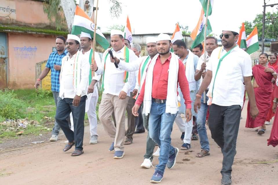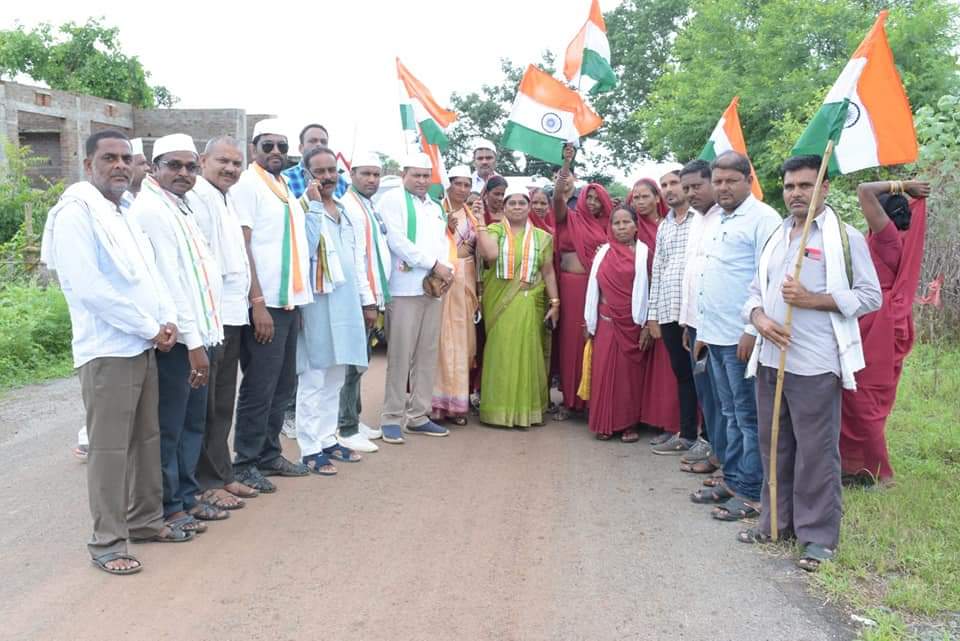 कवर्धा :- ठाठापुर, पंडरिया विधान सभा मे अजादी के 75 वीं वर्षगांठ पर 75 किलोमीटर की की शुरुआत पंडरिया विधानसभा के ग्राम बिरेंद्रनगर के नागा देव बाबा मंदिर से पुजा अर्चना कर जिला कांग्रेस अध्यक्ष नींलु चंद्रवंशी एवं बिधायक ममता चंद्राकर जी द्वारा पदयात्र का शुभारंभ कर ग्राम कोहड़िया, मोहनपुर, अचानकपुर, हथलेवा, बाजार चारभाठा, गोछिया,मुगेलीडीह, कैरझिटी, बंदौरा और झिरौनी तक 22 किलोमीटर पैदल चलकर सभी कांग्रेस पार्टी के कार्यकर्ता इस पदयात्र कार्यक्रम का रात्रि विश्राम ग्राम झिरौनी में हुआ।