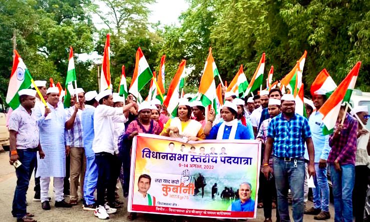 देश की आज़ादी की 75 वीं वर्षगाँठ पर कांग्रेस का “आज़ादी की गौरव यात्रा” का दूसरा दिन, पदयात्रियों ने पूर्व सांसद स्व सुर्ती किस्टैया के परिवार व सेवानिवृत सेनानी रणवीर सिंह भदौरिया का किया सम्मान