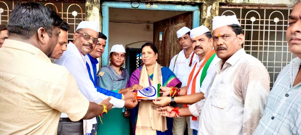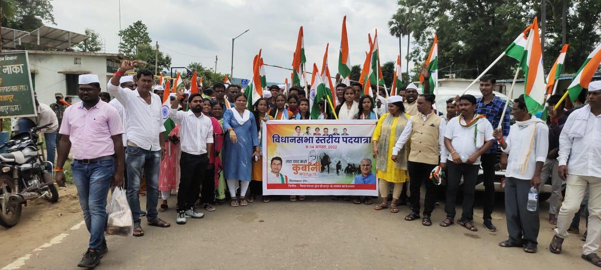 बीजापुर:- शुक्रवार 12 अगस्त को देश की आज़ादी की 75 वीं हीरक जयंती पर निकले “आज़ादी की गौरव यात्रा” के तीसरे दिन के पहले पहर में बीजापुर जिले के भोपालपटनम ब्लॉक के संगमपल्ली से प्रारम्भ होकर मद्देड ग्राम पहुँचा उसके बाद दूसरे पहर में पदयात्रियों का तिमेड ग्राम से शुरू हुआ और भोपालपटनम पहुँचने के बाद पद यात्रियों का दल बीजापुर के पूर्व विधायक स्वर्गीय राजेंद्र पामभोई जी के घर पहुँच उन्हें श्रद्धा-सुमन अर्पित किये और उनके परिवार वालों से मिलकर क्षेत्र में उनके द्वारा दिए गए योगदान को याद कर उन्हें राष्ट्रीय ध्वज तिरंगा झण्डा, श्रीफल एवं शाल भेंट किए।