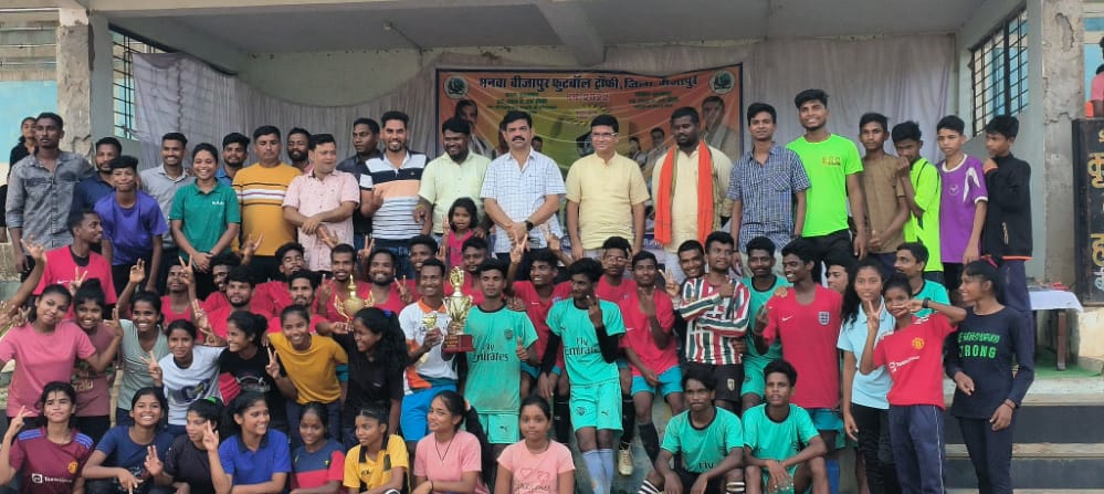 बीजापुर :- रविवार 25-09-2022 को चिकटराज समिति द्वारा आयोजित मनवा फुटबॉल ट्रॉफी का समापन बस्तर प्राधिकरण के उपाध्यक्ष व क्षेत्रीय विधायक विक्रम मण्डावी के मुख्यतिथ्य में सम्पन्न हुआ ।