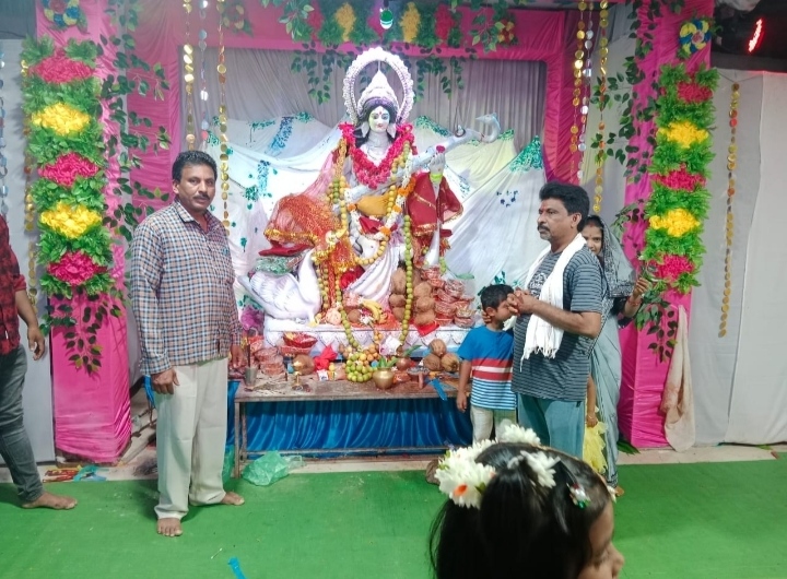 भोपालपट्टनम:- भोपालपट्टनम नगर एवं समूचे ब्लाक में शारदीय नवरात्रि एंव बतकम्मा का पर्व बड़े ही भक्ति श्रद्धा हर्षोउल्लास के साथ मनाया जा रहा है। नगर के वृदय स्थल क्लब प्रांगण के पण्डाल में टिमटिमाती रोशनी के साथ पण्डाल को साज सज्जा कर माँ दुर्गा जी का मूर्ति स्थापना कर पण्डित जी के द्वारा रोज सुबह शाम विधि विधान के साथ पूजा अर्चना किया जाता है। जिसके लिए शाम होते ही भक्तों का भीड़ लगा रहता है। बहुत से श्रद्धालु 9 दिनों तक माँ दुर्गा जी का श्रध्दा व निष्ठा के साथ उपवास करते है। और नगर के भक्तगण मनोकामना ज्योत भी अपने नाम से जलाते है।