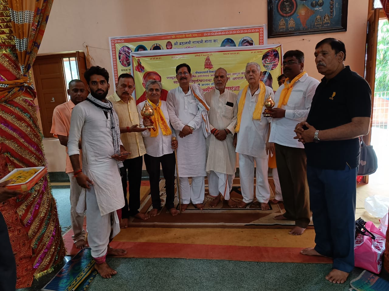 वाराणसी :- आज भारत धर्म महामण्डल के माता गायत्री देवी मन्दिर में पं श्री सत्यनारायण पाण्डेय जी की अध्यक्षता में महामण्डल के सभी सदस्यों की उपस्थिति में वैदिक मन्त्रोच्चार के साथ अखण्ड ज्योति प्रज्ज्वलित की गयी और इस ज्योति को अधिवक्ता पं रमेश उपाध्याय जी एवं श्री सतीश अग्रहरि जी ने जागेश्वर महादेव मन्दिर में महन्थ श्री मधुर कृष्ण दास जी के सान्निध्य में स्थापित किया।