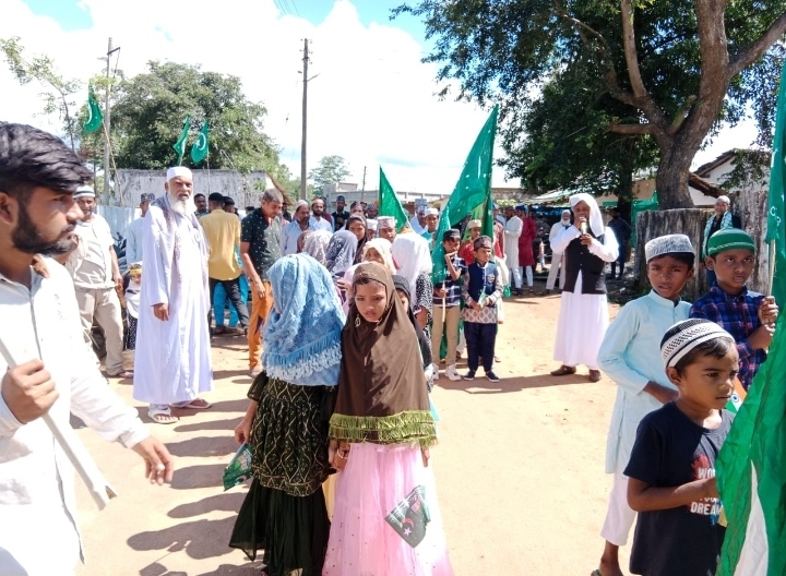 भोपालपटनम :- ईद मिलादुन्नबी पूरे उत्साह और उमंग के साथ मनाया गया । सुबह 9 बजे जामा मस्जिद भोपालपटनम से पूरे नगर में हुजुरे पाक मोहम्मद स,आ,व, की जुलेसे मोहम्मदी अपने पूरे एहतराम से निकाली गई । फिर वापस जामा मस्जिद में परचम कुशाई के बाद , पेश इमाम जामा मस्जिद ने पूरे मुसलमानों के हक में दुआएं की हिंदुस्तान में अमन चैन कायम रहे और भाईचारा यूं ही बने रहे । इस पूरे जशने ईद मिलादुन्नबी के धूम धाम से मनाने में पुलिस प्रशासन, ने अंजुमन कमेटी का पूरा सहयोग किया ।हम सभी सुन्नी मुस्लिम जमात भोपालपटनम आप सभी का शुक्रगुज़ार हैं ।