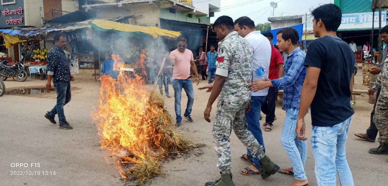 भाजपाई ने जलाया मुख्यमंत्री का पुतला,भूपेश बघेल इस्तीफा दो के लगाए नारे