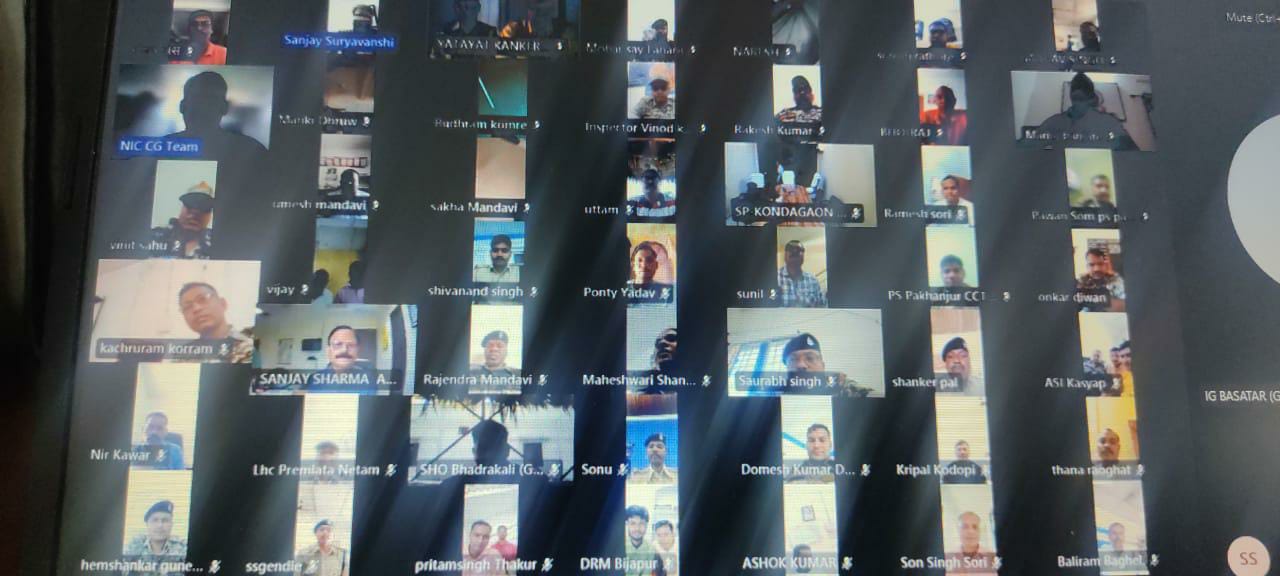 प्राप्त जानकारी के अनुसार ऑनलाईन विडियो कॉन्फ्रेंसिंग में पी. सुंदरराज ( IGP बस्तर संभाग) विनीत साहू (DSP एवं नोडल, iRAD), संजय सूर्यवंशी (ट्रैफिक इंचार्ज , बीजापुर ) शशिकांत भारद्वाज (इंस्पेक्टर एवं सहायक नोडल, iRAD) एवं प्रवीण उप्पल (DRM iRAD, बीजापुर) उपस्थित थे।