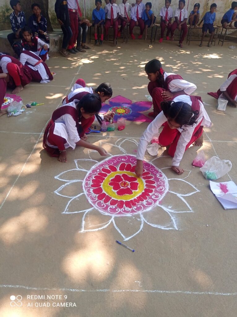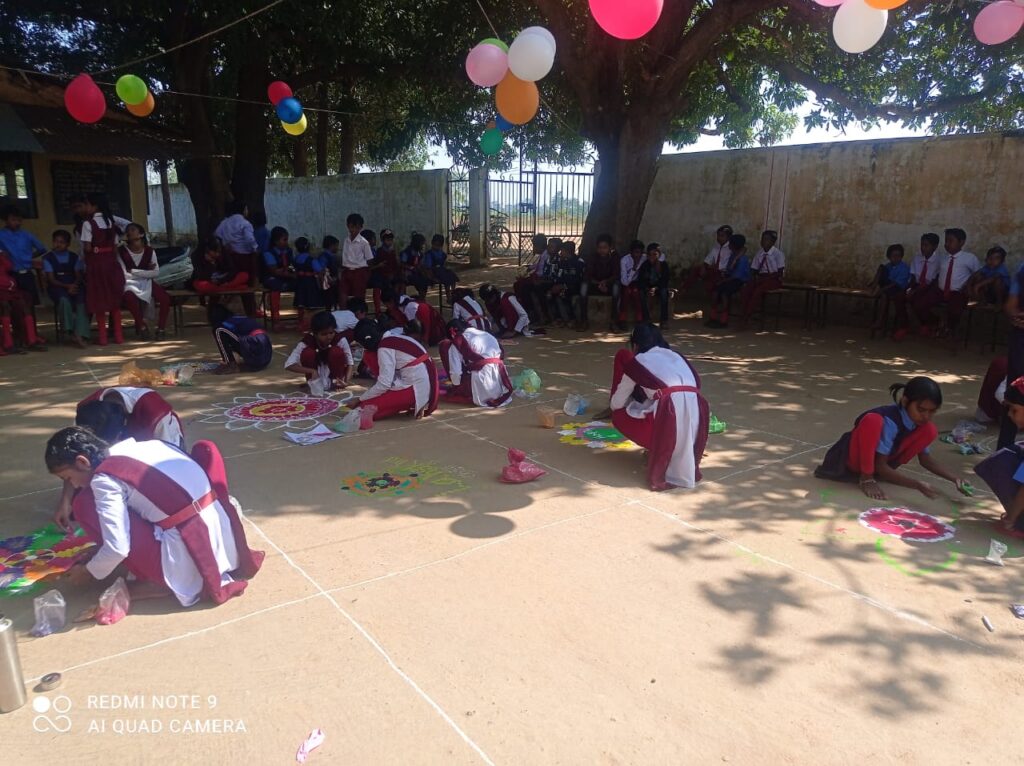 पीवी 58 स्कूल में धूमधाम से मनाया गया बाल दिवस,नेहरू की याद में बच्चों ने बनाई रंगोली